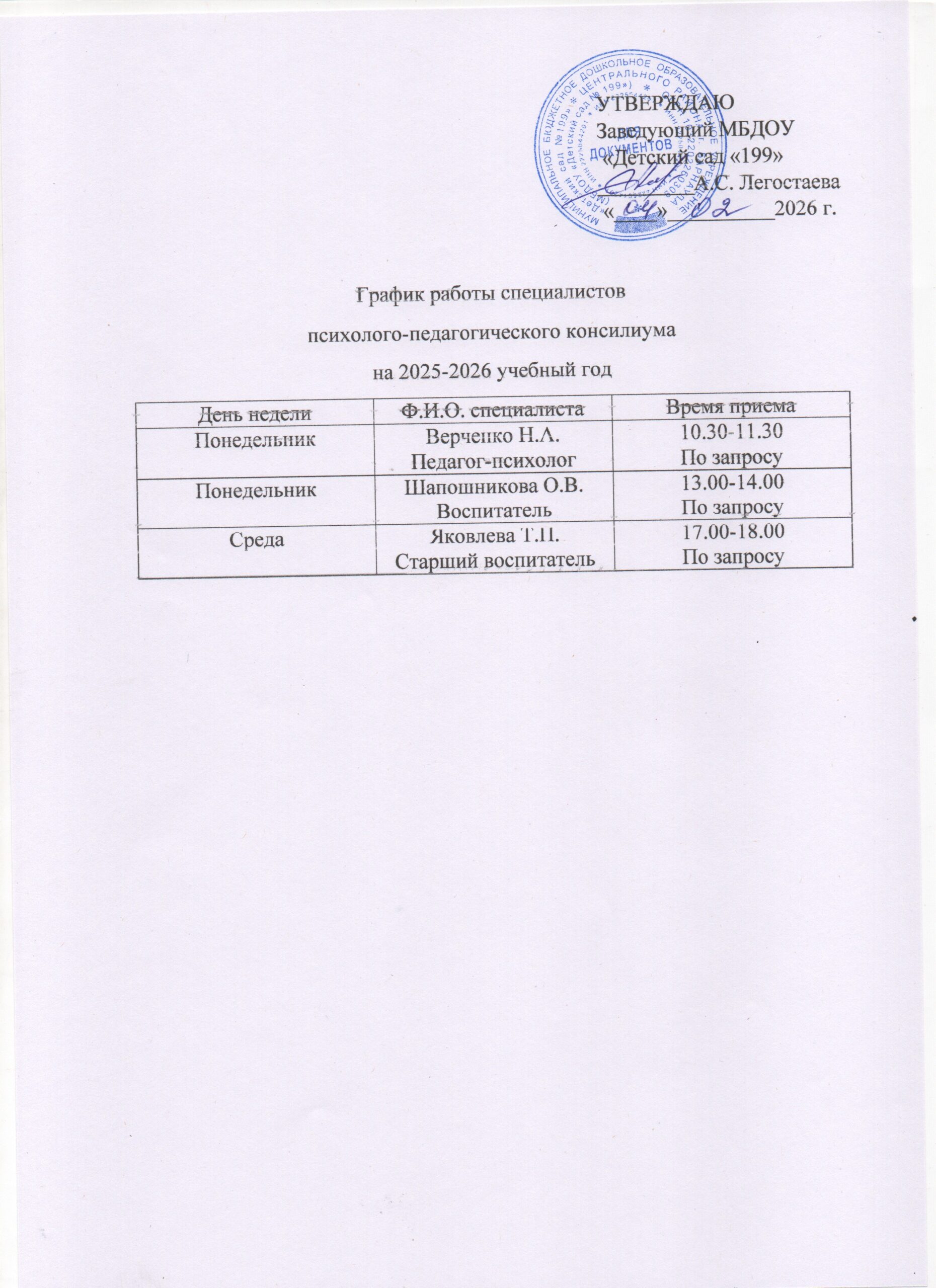 График работы специалистов ППк на 2025-2026 учебный год